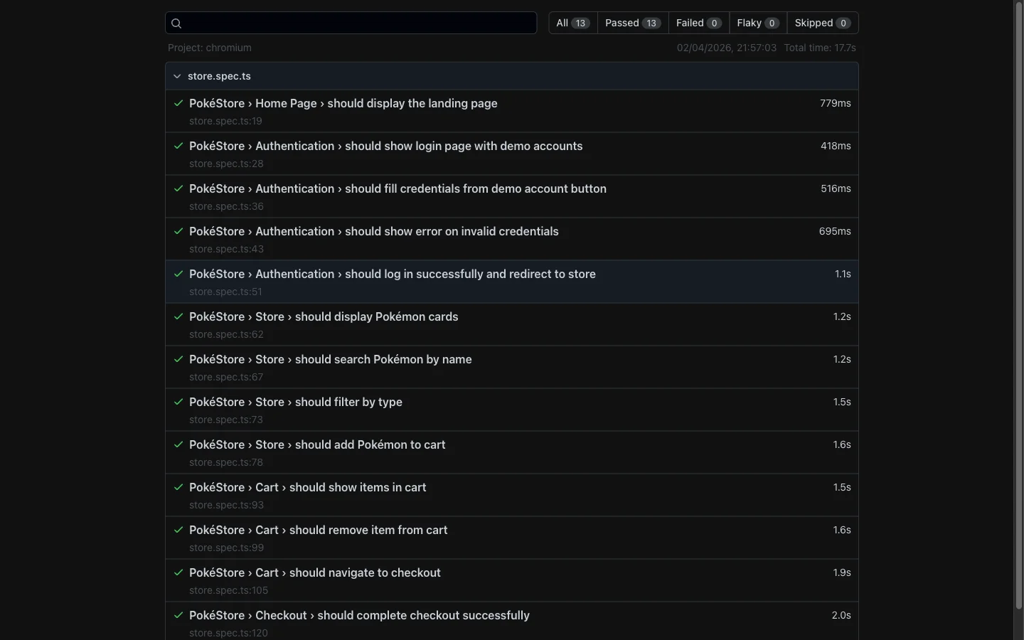 TCPテレメトリ付きマルチロケーションHTTPチェック、SSL・ドメイン期限アラート。Playwrightテストスイートでログイン、決済、検索フローを定期監視として実行。